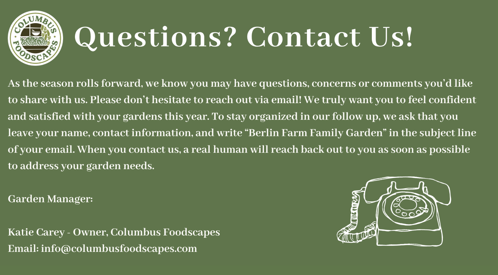 We hired Columbus Foodscapes last spring (2025) to install drip irrigation for ten elevated garden beds (and some surrounding areas), and to provide advice regarding what vegetables to plant and where. Katie was both knowledgeable and a pleasure to work with. Her enthusiasm is delightful. She and her crew put in the irrigation system in a timely fashion and explained to us how best to use it. Weeks later, as questions arose, Katie was quick to respond with answers. We'd be happy to work with her again if our gardening needs more expert help.